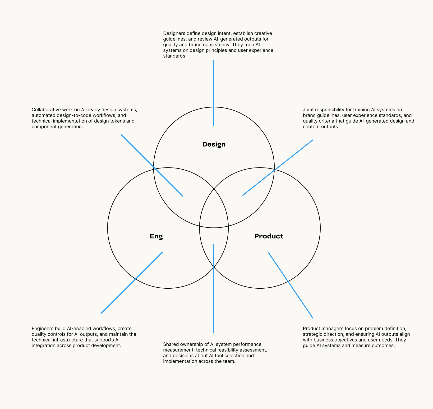 This means developing new competencies around prompt engineering, context architecture, and AI workflow design. The design systems team becomes responsible for ensuring that when AI generates a new component or suggests a design pattern, it's aligned with your strategic objectives and brand positioning.
