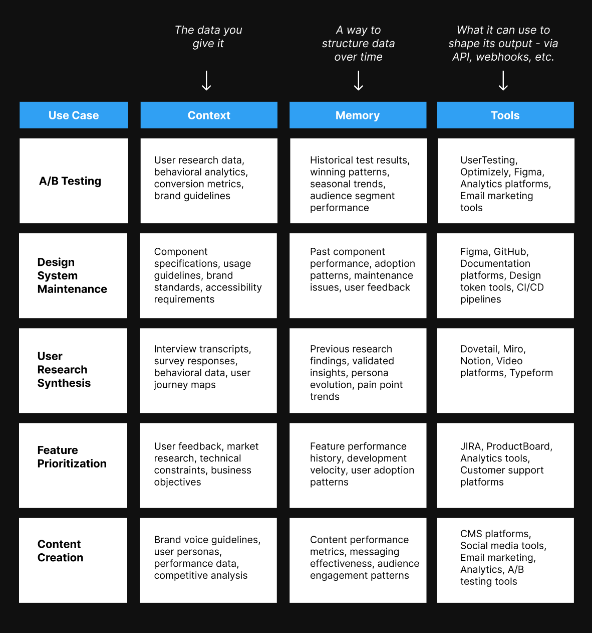 Historically, Growth teams struggled to make sense of that data at scale. You’d rely on anecdotes from Sales — or spend days manually combing through call notes. That’s where AI helps significantly. In the book (‘The Complete Guide to AI-First Product Design’), I talk about ‘context engineering’ — the discipline of taking unstructured inputs like interviews or decision logs and structuring them so AI can reason over them.
